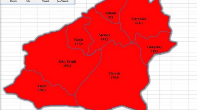 Zonguldak Merkez 50 vaka sayısı ile en yüksek riskli bölge olarak yer alırken, Ereğli 41 vaka sayısı ile ikinci sırada yer aldı.