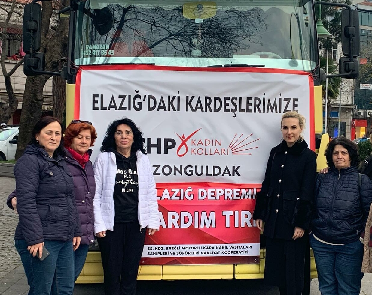 CHP Zonguldak Kadın Kolları İl Başkanlığı ve Ana Nakliyat Ereğli Kooperatifi işbirliği ile deprem felaketi sonrası yaralarını sarmaya çalışan Elazığ’a gıda ve battaniye yardımı yapıldı..