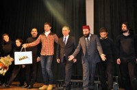 İzleyicilerinin ayakta alkışladığı oyun sonunda Başkan Uysal, tiyatro oyuncularına çiçek takdim etti.