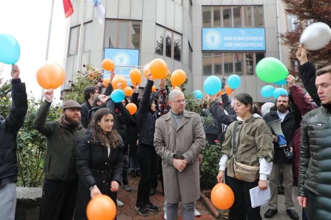 Bursa Uludağ Üniversitesi GSF Tiyatro Bölümü öğrencilerinin, sıra arkadaşları Vuslat Su Yiğit ile beraber anayasal protesto hakkını kullandıkları için tutuklanan tüm gençler adına düzenledikleri dayanışma etkinliğinde, tutuklu öğrencilerin özgürlüğünü simgeleyen balonlar kullanıldı.